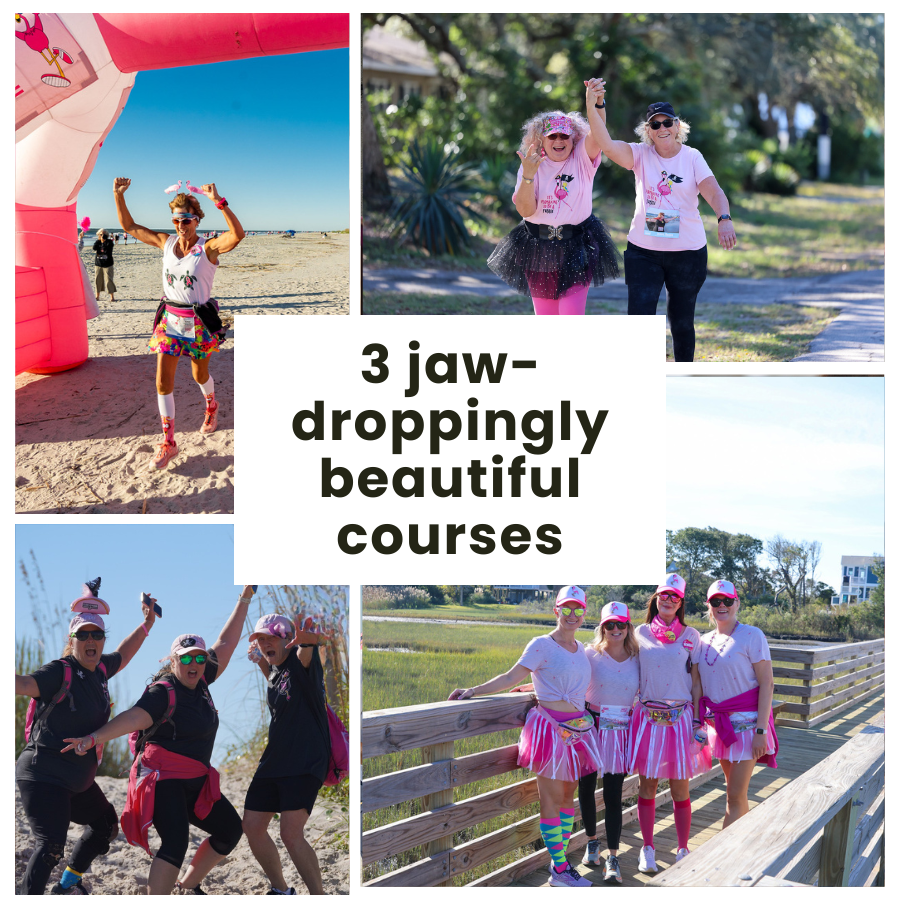 And don’t forget your heavy swag bag, course amenities, games, contests, scavenger hunts, meet & greets, a flock of flamingos, and a jammed-packed weekend of shenanigans!